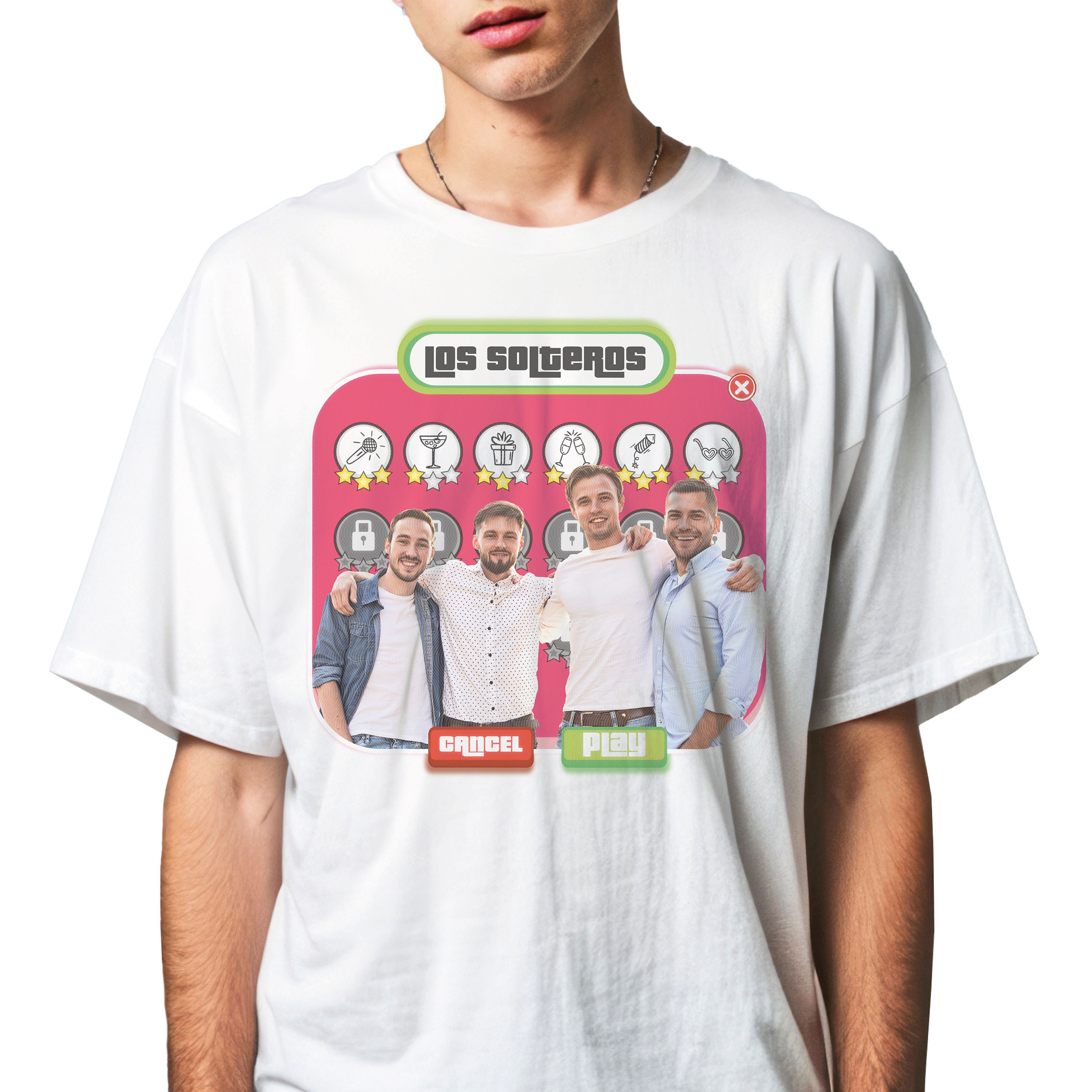 El diseño Next Level lleva vuestra despedida al siguiente nivel. Personaliza tu camiseta con las fotos de tus amigos en un formato de videojuego. Ideal para Despedidas de Soltero o Soltera. Disponible con personalización a dos caras. ¡Pásate la pantalla! Entrega exprés 24/48h. Gastos de envío gratis.